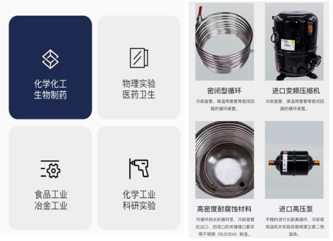 7、對于高純金屬、稀有物質(zhì)提純、環(huán)境實驗室及磁控測射,真空鍍膜設備等大型貴重貴實驗設備,可提供滿足對溫度和水質(zhì)雙重要求的冷卻水,具有節(jié)能,節(jié)水,防污染,防結(jié)垢的特點,可有效保護大型精密儀器設備。